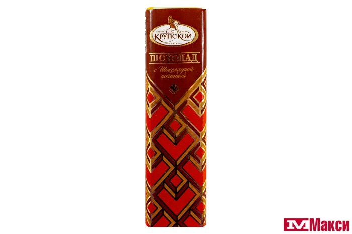 ШОКОЛАДНЫЙ БАТОНЧИК ТЕМНЫЙ С ШОКОЛАДНОЙ НАЧИНКОЙ 47Г (КРУПСКАЯ)