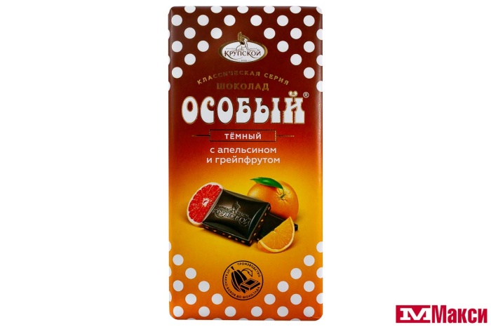 ШОКОЛАД "ОСОБЫЙ" С АПЕЛЬСИНОМ И ГРЕЙПФРУТОМ 85Г (КРУПСКАЯ)