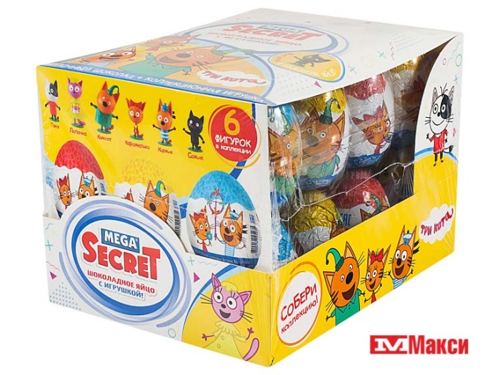 ЯЙЦО ШОКОЛАДНОЕ С ИГРУШКОЙ "MEGA SECRET" ТРИ КОТА 20Г (ЭВРИКА)