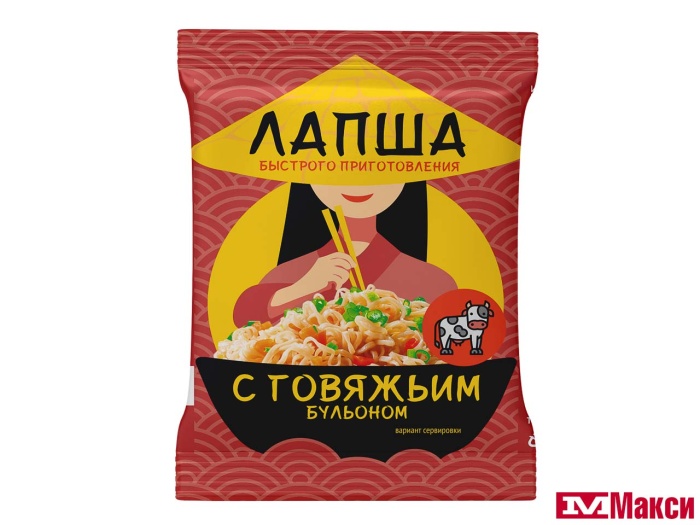 ЛАПША БЫСТРОГО ПРИГОТОВЛЕНИЯ С ГОВЯЖЬИМ БУЛЬОНОМ 60Г