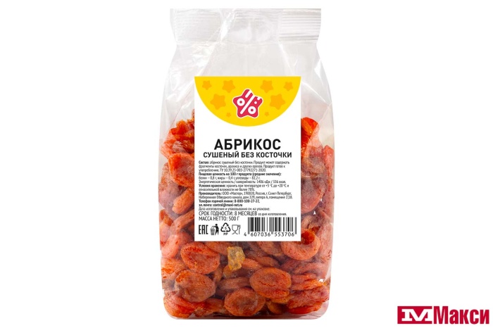 ФРУКТЫ СУШЕНЫЕ АБРИКОС БЕЗ КОСТОЧКИ 500Г