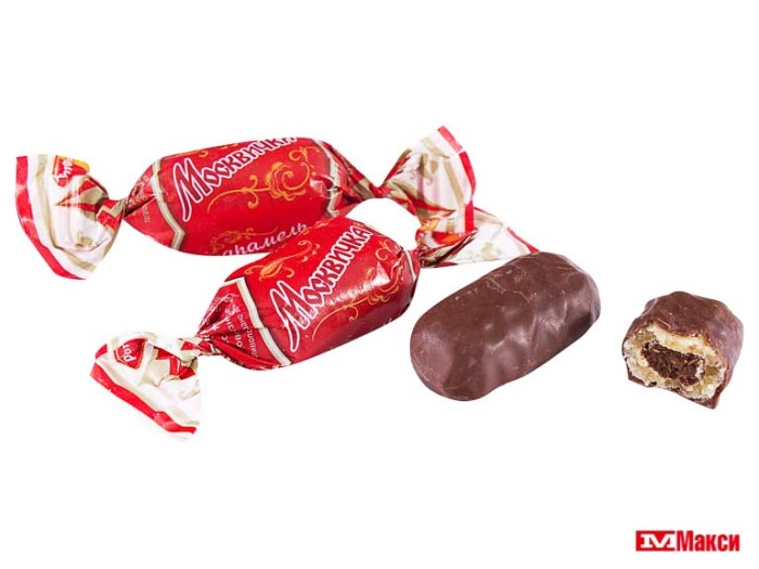 КАРАМЕЛЬ В ШОКОЛАДНОЙ ГЛАЗУРИ "МОСКВИЧКА" (РОТ-ФРОНТ)(классическая)