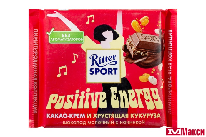 ШОКОЛАД "РИТТЕР СПОРТ" КАКАО-КРЕМ И ХРУСТЯЩАЯ КУКУРУЗА МОЛОЧНЫЙ 100Г