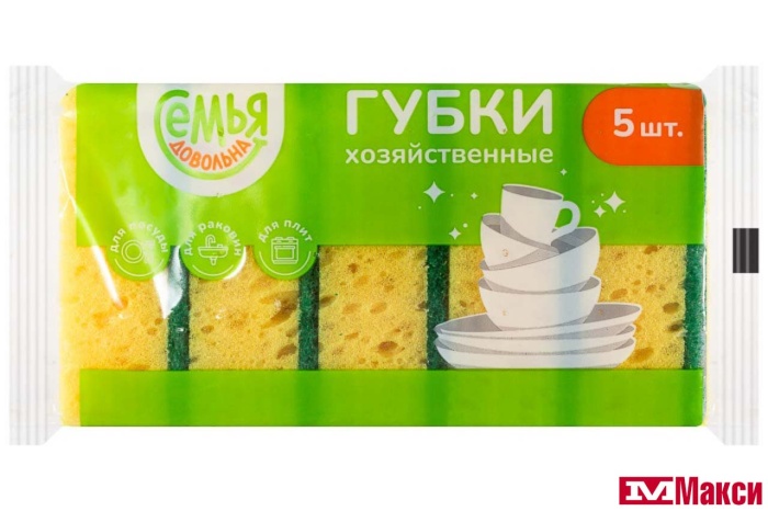 ГУБКА ДЛЯ ПОСУДЫ "СЕМЬЯ ДОВОЛЬНА" КРУПНОПОРИСТАЯ 5ШТ(classic)