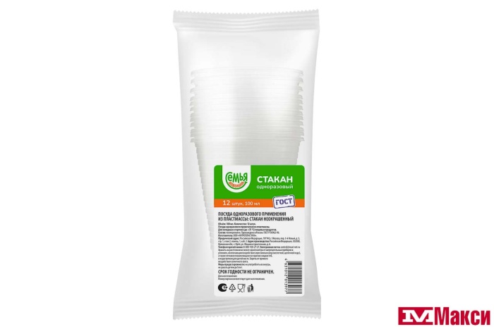 СТАКАН ОДНОРАЗОВЫЙ 100МЛ 12ШТ (СЕМЬЯ ДОВОЛЬНА)