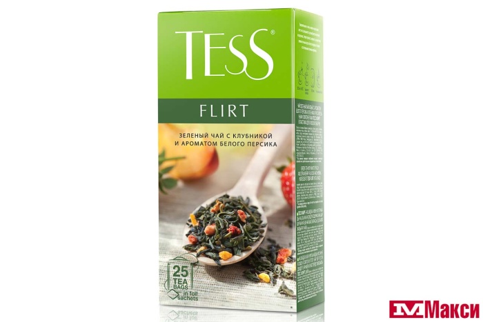 ЧАЙ "TESS" FLIRT ЗЕЛЕНЫЙ С КЛУБНИКОЙ И АРОМАТОМ БЕЛОГО ПЕРСИКА 25 ПАКЕТИКОВ С ЯРЛЫЧКАМИ (ОРИМИ-ТРЭЙД)