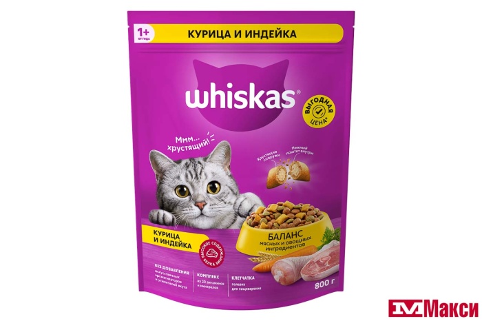 КОРМ ДЛЯ КОШЕК "ВИСКАС" С НЕЖНЫМ ПАШТЕТОМ СУХОЙ 800Г(курица/индейка)