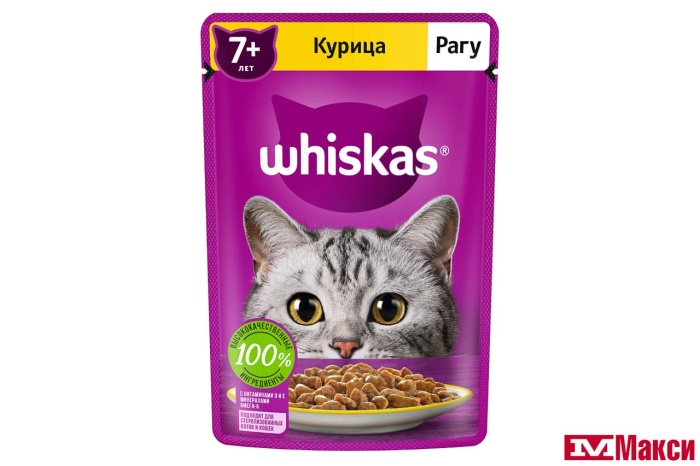 КОРМ ДЛЯ КОШЕК "ВИСКАС" 75Г ФОЛЬГА(рагу с курицей/для кошек старше 7лет)