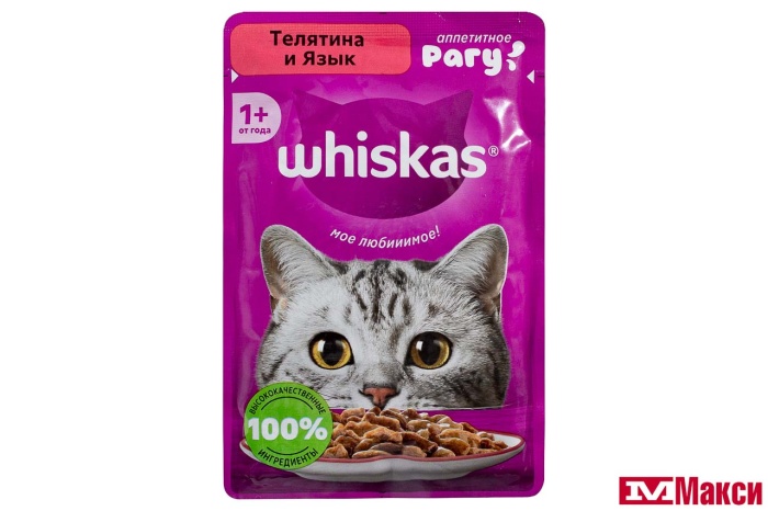 КОРМ ДЛЯ КОШЕК "ВИСКАС" 75Г ФОЛЬГА(рагу телятина и язык)
