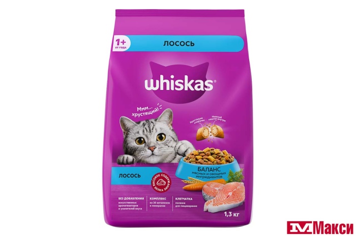 КОРМ ДЛЯ КОШЕК "ВИСКАС" ВКУСНЫЕ ПОДУШЕЧКИ 1,3КГ(д/взрослых кошек/аппетитный обед с лососем)