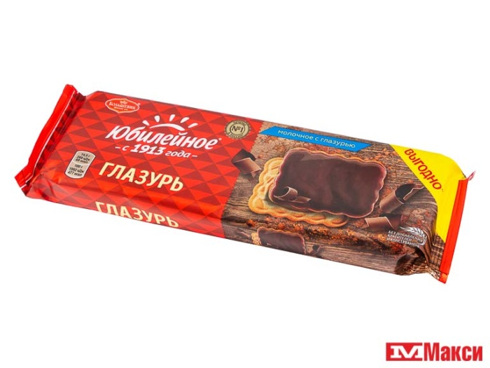 ПЕЧЕНЬЕ САХАРНОЕ С ГЛАЗУРЬЮ "ЮБИЛЕЙНОЕ" 116Г (МОН' ДЭЛИС РУСЬ)(в темной глазури)