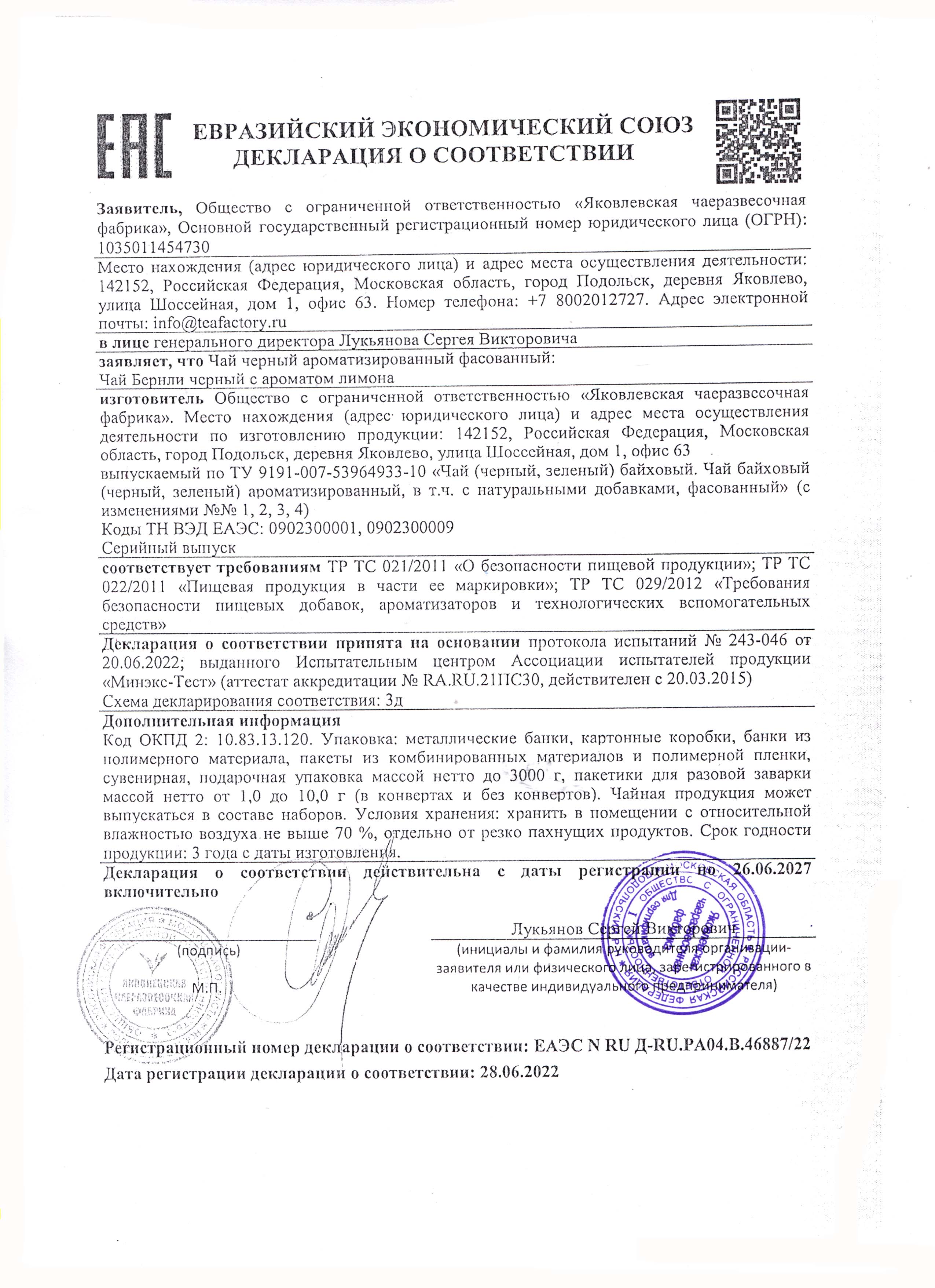 ЧАЙ "БЕРНЛИ" ЛИМОН ЧЕРНЫЙ 25 ПАКЕТИКОВ