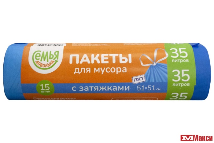 ПАКЕТЫ ДЛЯ МУСОРА "СЕМЬЯ ДОВОЛЬНА" С ЗАТЯЖКАМИ БИО БЕЖЕВЫЕ 35Л 15ШТ