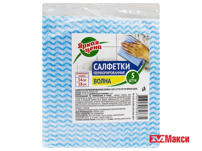 САЛФЕТКА "ЯРКАЯ ЦЕНА" ПЕРФОРИРОВАННАЯ ВОЛНА 34Х38СМ 5ШТ