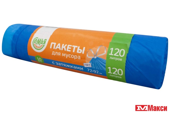 ДЛЯ ДОМА: ПАКЕТЫ ДЛЯ МУСОРА С ЗАТЯЖКАМИ 120Л 10ШТ СИНИЕ (СЕМЬЯ ДОВОЛЬНА)