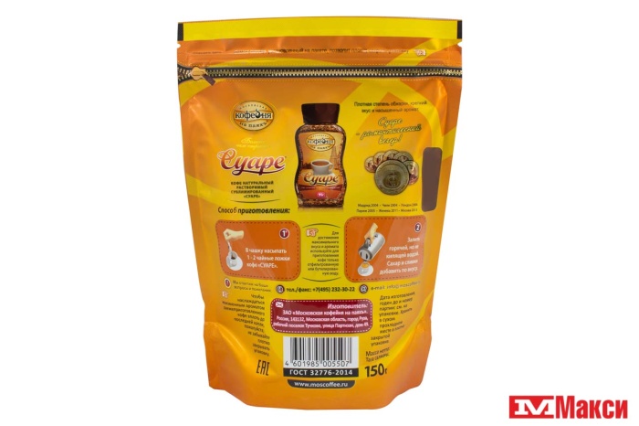 КОФЕ "СУАРЕ" СУБЛИМИРОВАННЫЙ 150Г ПАКЕТ (МОСКОВСКАЯ КОФЕЙНЯ НА ПАЯХЪ)