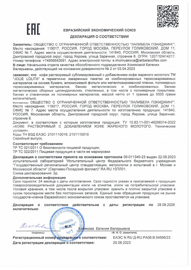 КОФЕ "JOLIE LOLITA" РАСТВОРИМЫЙ СУБЛИМИРОВАННЫЙ С ДОБАВЛЕНИЕМ МОЛОТОГО ЖАРЕНОГО 95Г СТ/Б