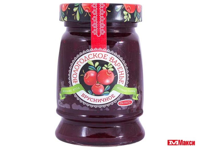 ВАРЕНЬЕ БРУСНИЧНОЕ "ВОЛОГОДСКОЕ" 370Г СТ/Б
