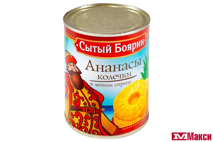 АНАНАСЫ В ЛЕГКОМ СИРОПЕ "СЫТЫЙ БОЯРИН" КОЛЬЦА 580МЛ Ж/Б
