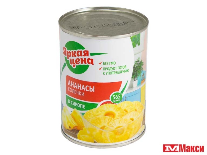 АНАНАСЫ В СИРОПЕ "ЯРКАЯ ЦЕНА" КОЛЬЦА 580МЛ Ж/Б