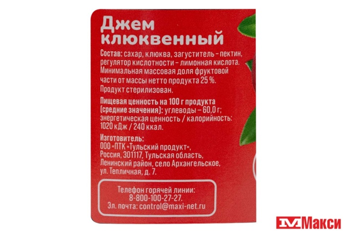 ДЖЕМ КЛЮКВЕННЫЙ 320Г СТ/Б (СЕМЬЯ ДОВОЛЬНА)
