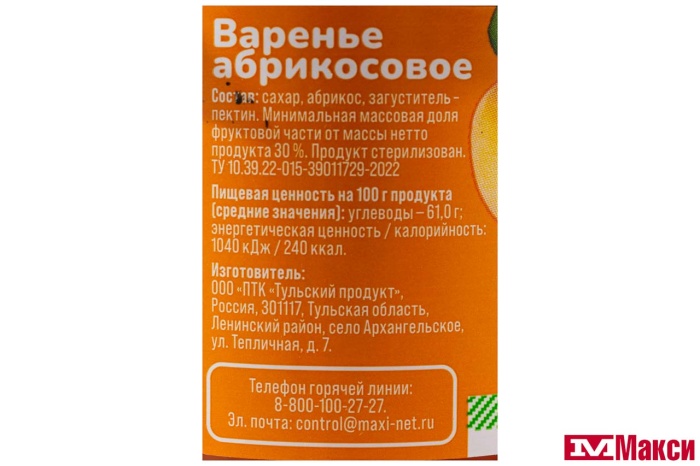 ВАРЕНЬЕ АБРИКОСОВОЕ 320Г СТ/Б (СЕМЬЯ ДОВОЛЬНА)