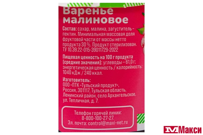 ВАРЕНЬЕ МАЛИНОВОЕ 320Г СТ/Б (СЕМЬЯ ДОВОЛЬНА)