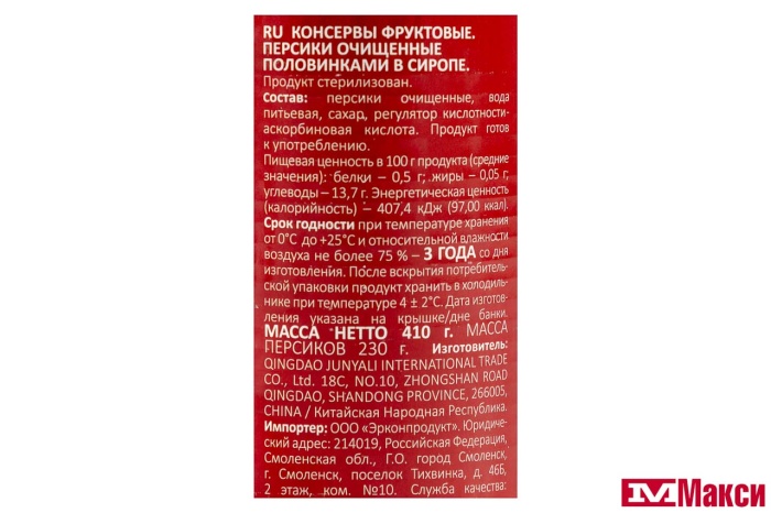 КОМПОТ "КРАСНАЯ ЛИНИЯ" ПЕРСИКИ ПОЛОВИНКИ 410Г Ж/Б