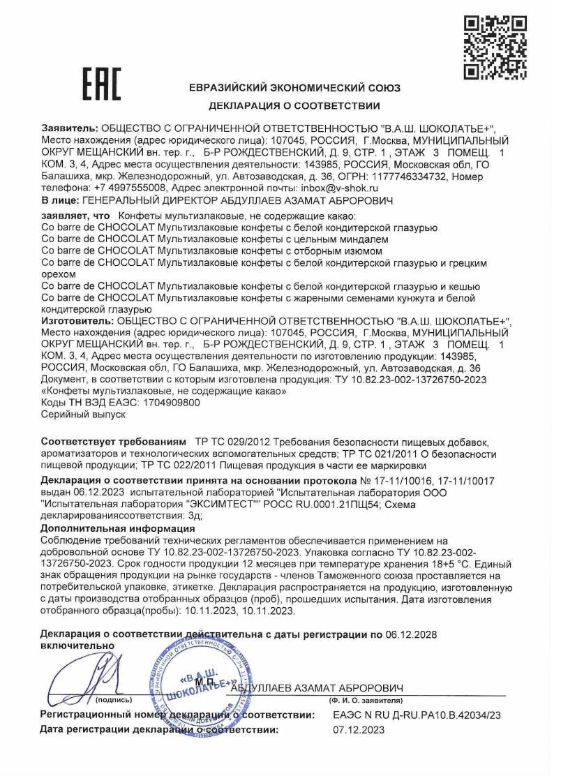 КОНФЕТЫ МУЛЬТИЗЛАКОВЫЕ С ГЛАЗУРЬЮ "CO BARRE DE CHOCOLAT" В АССОРТИМЕНТЕ (В.А.Ш ШОКОЛАТЬЕ)(темная глазурь)