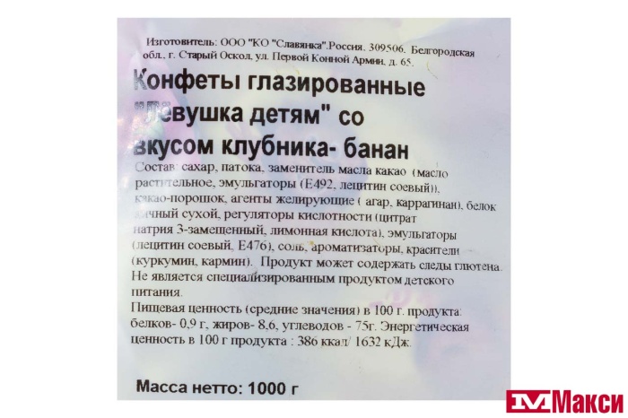 КОНФЕТЫ "ЛЕВУШКА ДЕТЯМ" КЛУБНИКА-БАНАН 1КГ (СЛАВЯНКА)