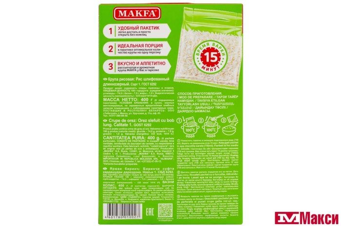 Крупа продолговатой формы хорошо сохраняет форму во время варки. Нежный вкус свежесваренного риса помогает хорошо раскрыться другим ингредиентам блюда. Применяется чаще в несладких блюдах.Варится 15 минут.