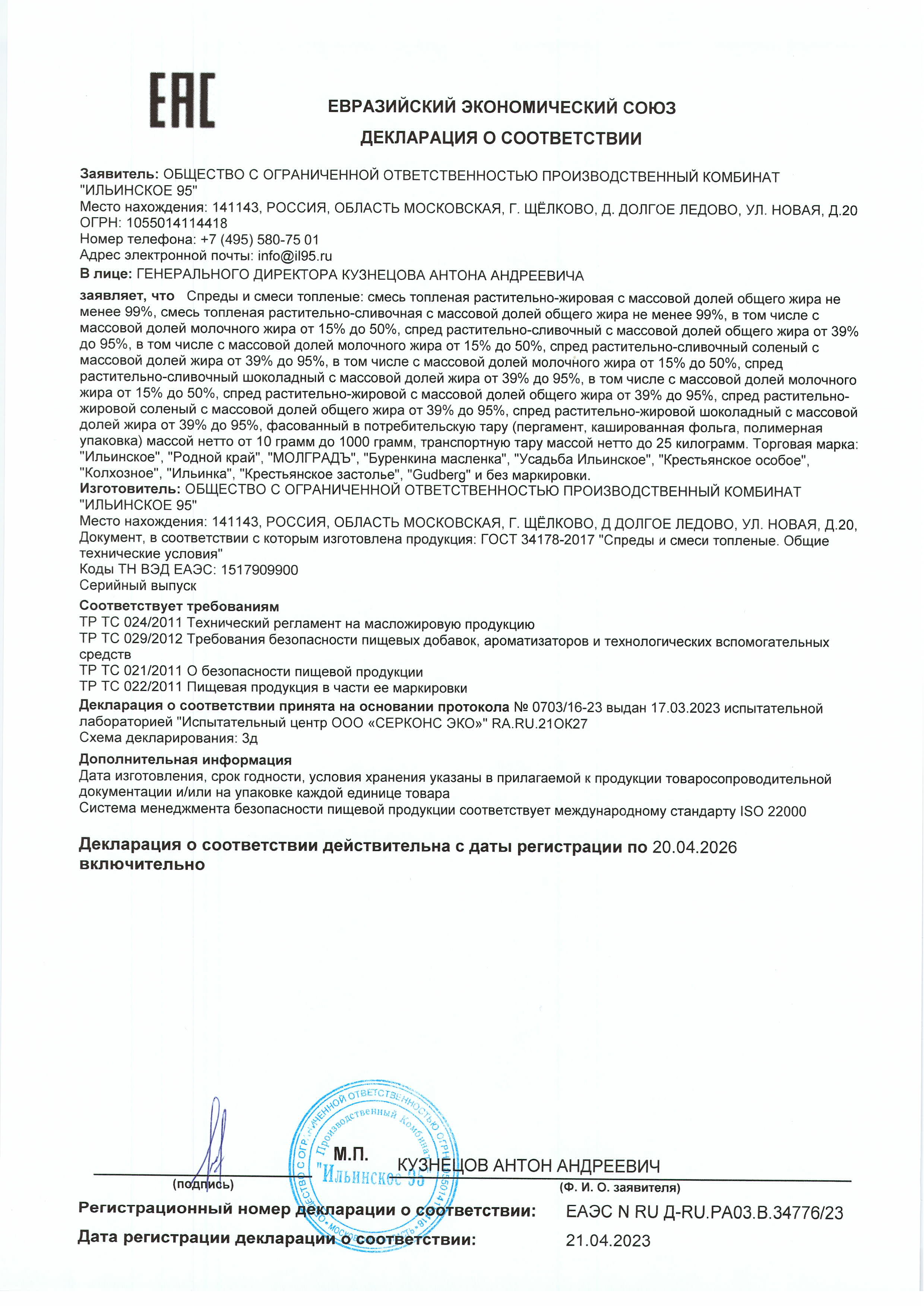 СПРЕД "ИЛЬИНКА" 72,5% 180Г ПЕРГАМЕНТ (ПК ИЛЬИНСКОЕ)