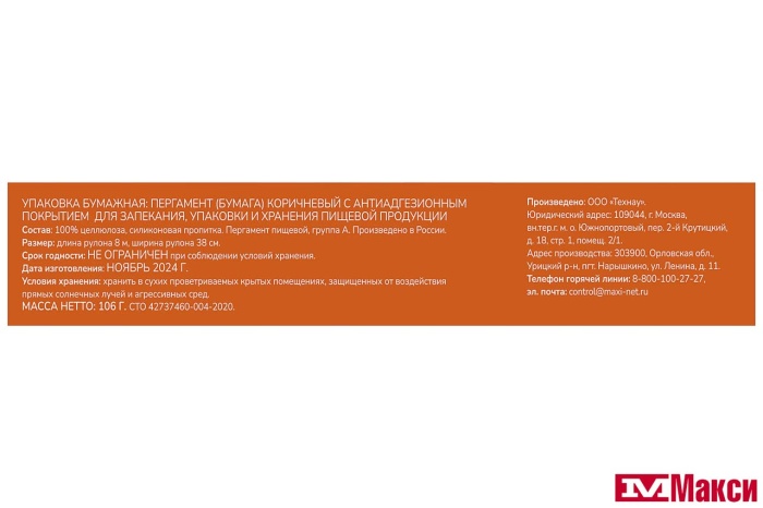 ПЕРГАМЕНТ ДЛЯ ВЫПЕКАНИЯ "СЕМЬЯ ДОВОЛЬНА" ДВУСТОРОН. СИЛИКОНИЗИРОВАННЫЙ 38СМХ8М
