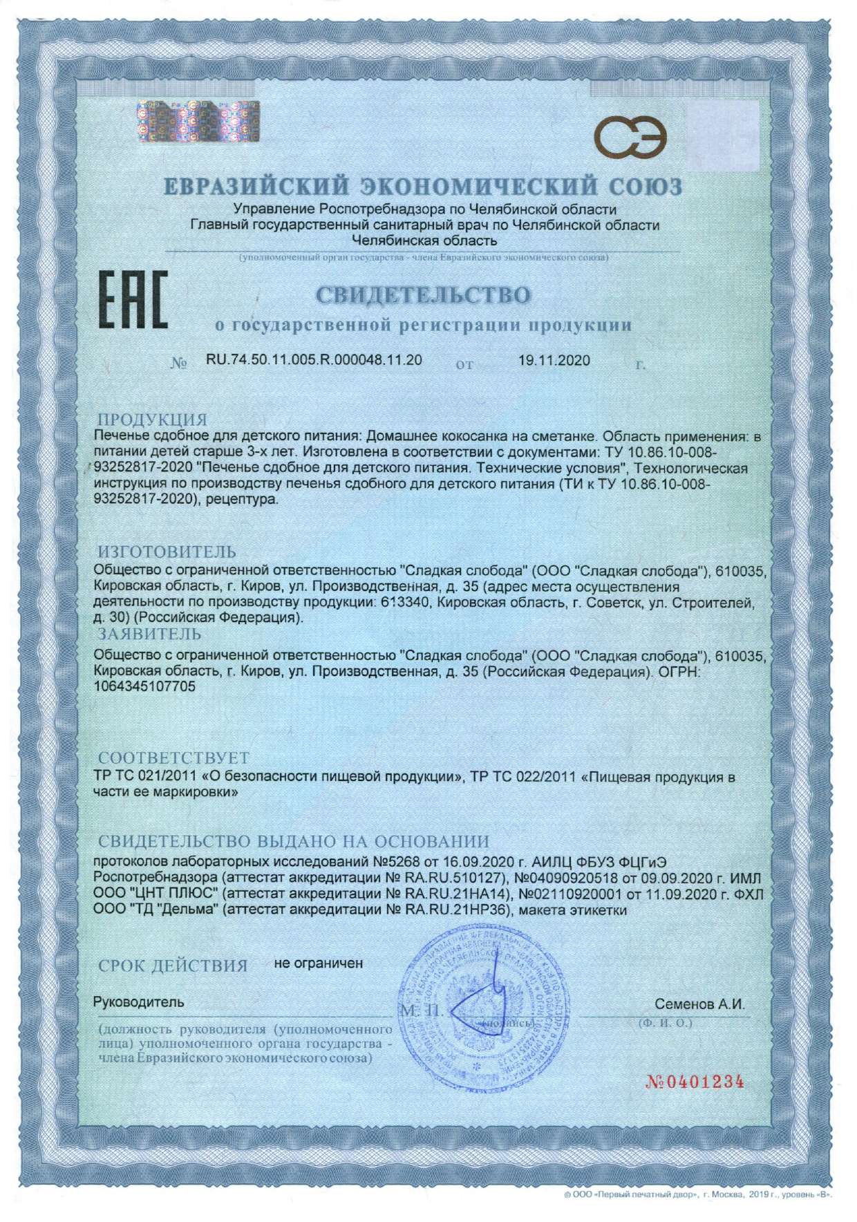 ПЕЧЕНЬЕ "ДОМАШНЕЕ" КОКОСАНКА НА СМЕТАНКЕ ДЛЯ ДЕТСКОГО ПИТАНИЯ (СЛАДКАЯ СЛОБОДА)