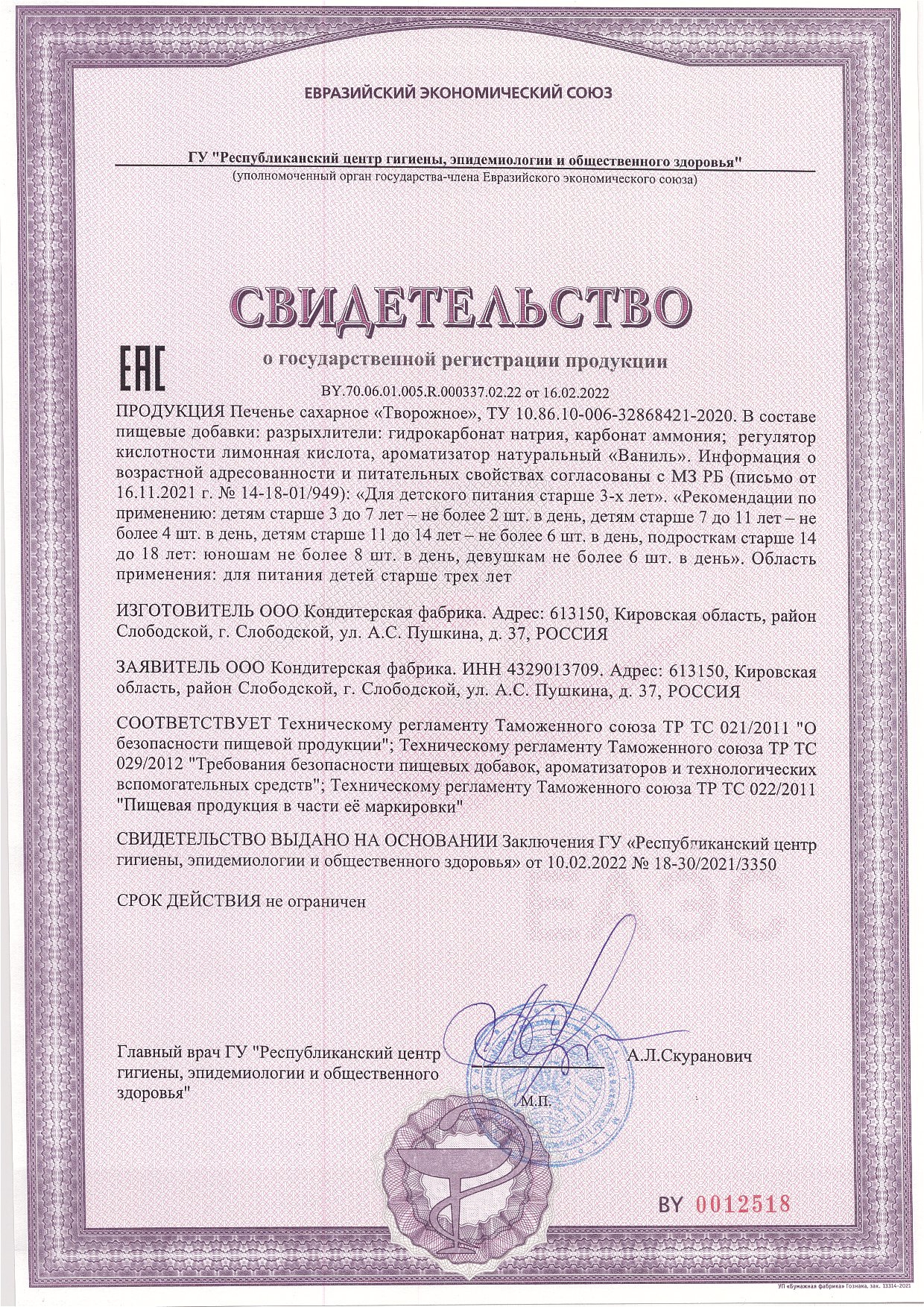 ПЕЧЕНЬЕ "ТВОРОЖНОЕ" (ДЫМКА) (ДЕТСКОЕ ПИТАНИЕ)
