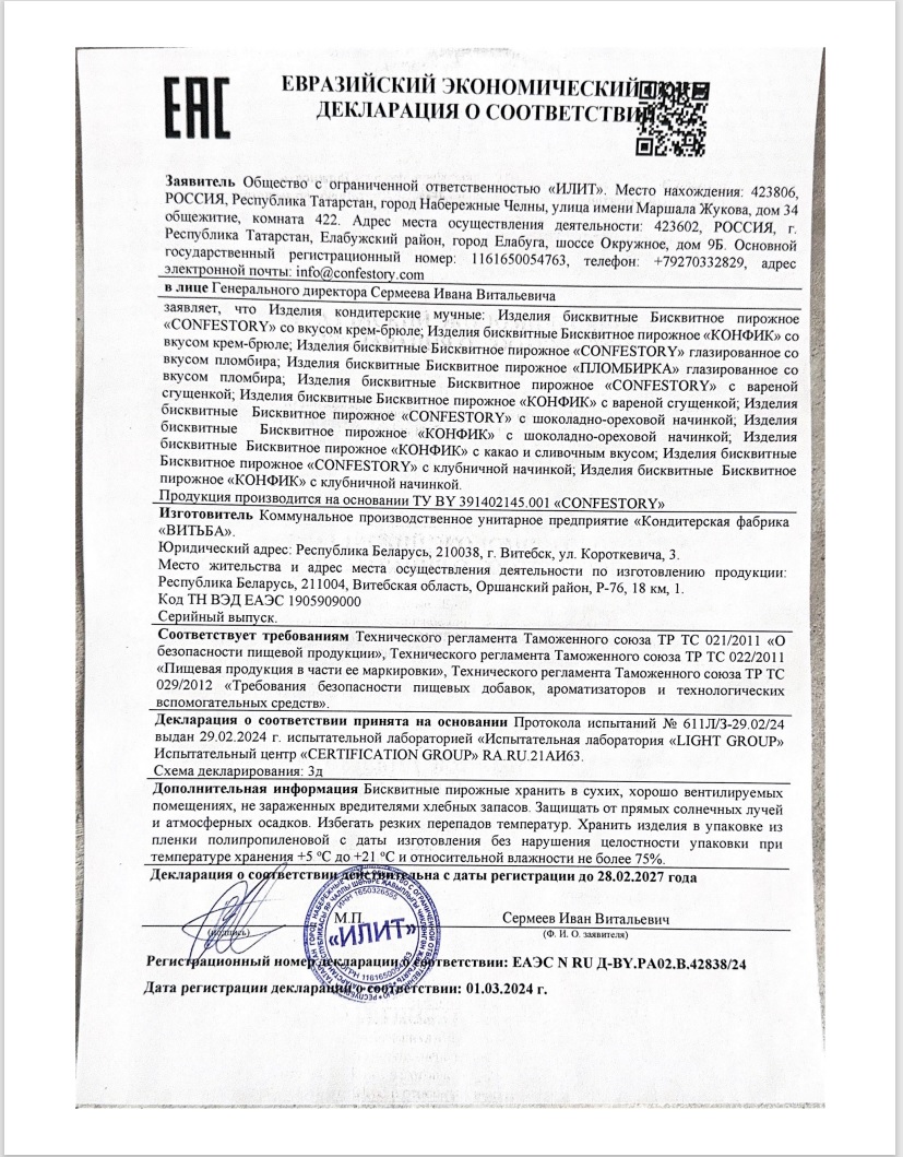 ПИРОЖНОЕ "КОНФИК" СО СГУЩЕНКОЙ 150Г (CONFESTORY)
