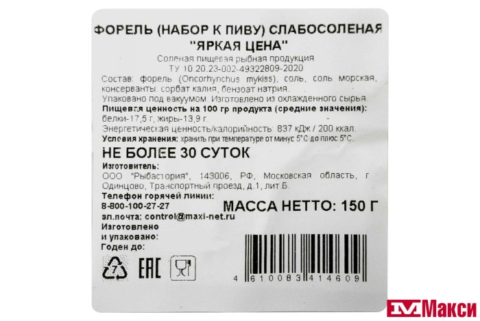 ФОРЕЛЬ ФИЛЕ-КУСОК СЛАБОЙ СОЛИ 150Г В/У