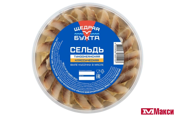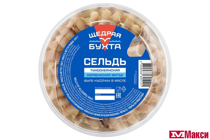 ПРЕСЕРВЫ (ЩЕДРАЯ БУХТА) СЕЛЬДЬ "НОРВЕЖСКАЯ МАТЬЕ" ФИЛЕ-КУСОЧКИ В МАСЛЕ С/С 380Г