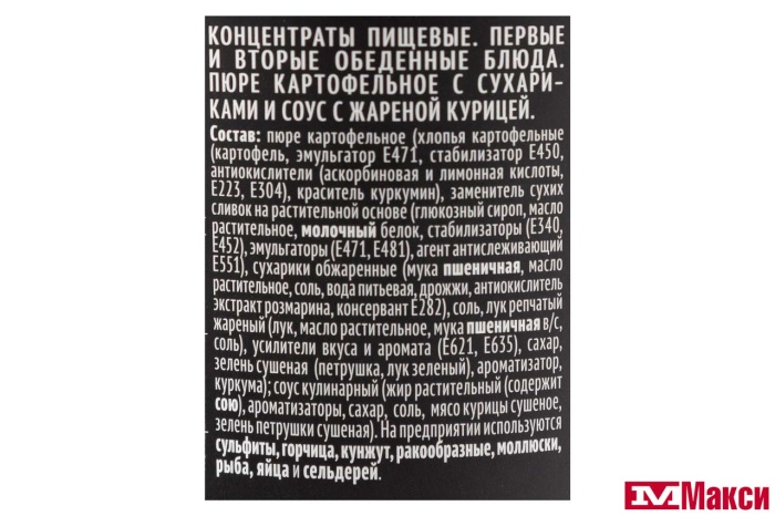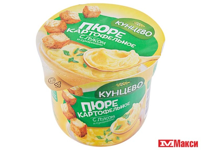 ПЮРЕ КАРТОФЕЛЬНОЕ БЫСТРОГО ПРИГОТОВЛЕНИЯ "КУНЦЕВО" 40Г(с луком и сухариками)