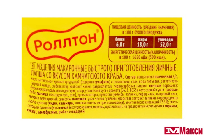 ЛАПША ЯИЧНАЯ БЫСТРОГО ПРИГОТОВЛЕНИЯ "РОЛЛТОН" ПО-ДОМАШНЕМУ В АССОРТИМЕНТЕ 90Г(камчатский краб)