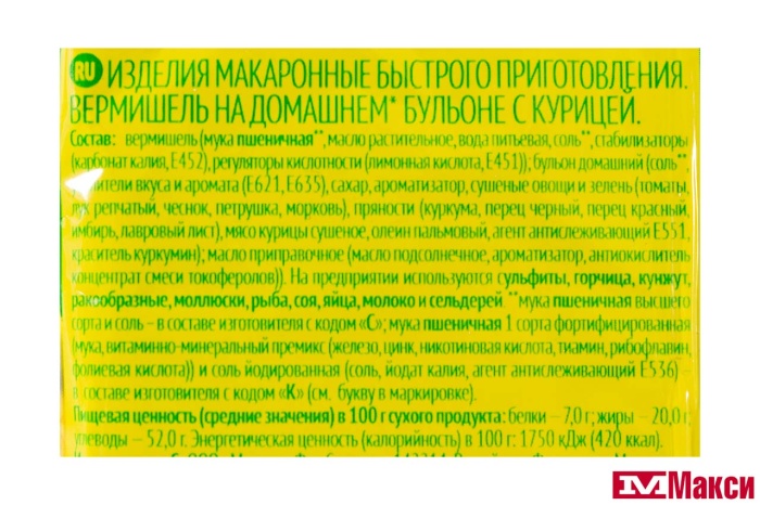 ВЕРМИШЕЛЬ БЫСТРОГО ПРИГОТОВЛЕНИЯ "ПЕТРА" В АССОРТИМЕНТЕ 50Г (РОЛЛТОН)(куриный)