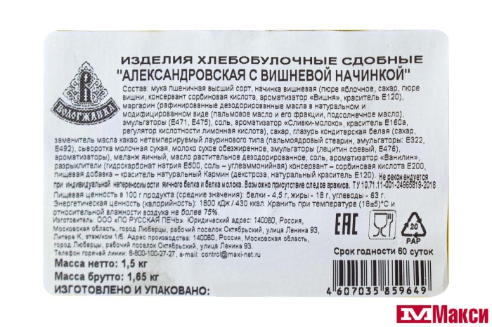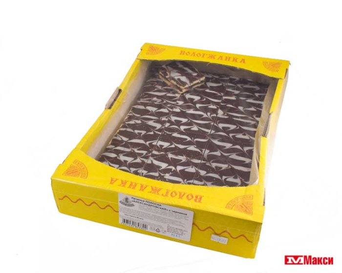 ПИРОЖНОЕ "ПОЛОСКА АЛЕКСАНДРОВСКАЯ" С ЧЕРНИЧНОЙ НАЧИНКОЙ (ВОЛОГЖАНКА)