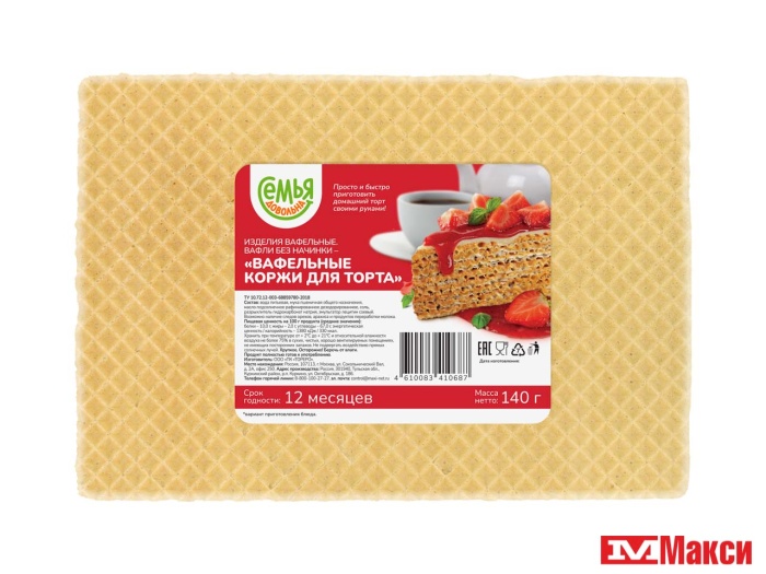 ТОРТ ВАФЕЛЬНЫЙ "ВОЛОГЖАНКА" КЛАССИЧЕСКИЙ 220Г