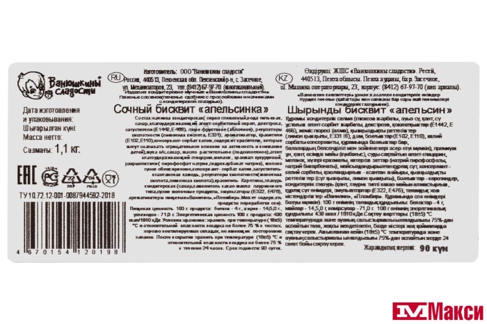 ПЕЧЕНЬЕ СОЧНЫЙ БИСКВИТ "АПЕЛЬСИНКА" (ВАНЮШКИНЫ СЛАДОСТИ)