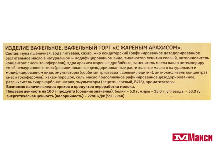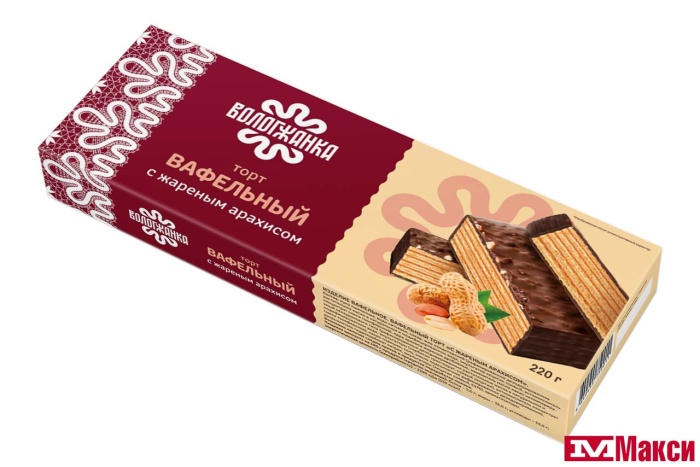 ТОРТ ВАФЕЛЬНЫЙ "ВОЛОГЖАНКА" С ЖАРЕНЫМ АРАХИСОМ 220Г