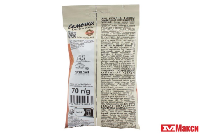 СЕМЕЧКИ ТЫКВЕННЫЕ "ЁШКИ-МАТРЁШКИ" ЖАРЕНЫЕ 100Г