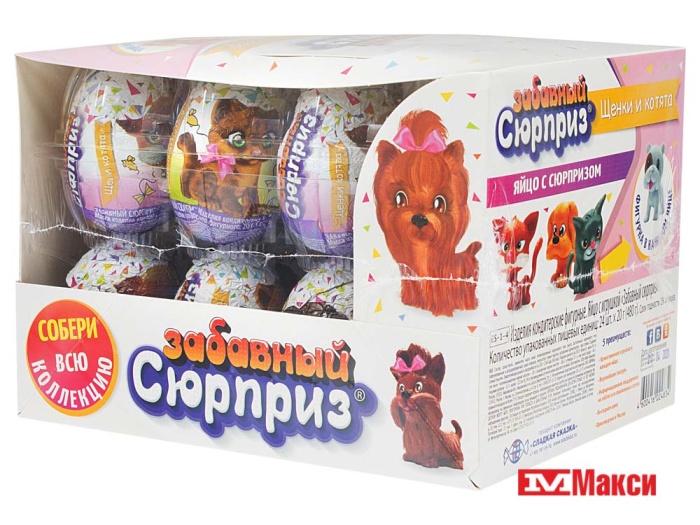 ЯЙЦО ШОКОЛАДНОЕ "ЗАБАВНЫЙ СЮРПРИЗ" ДЛЯ ДЕВОЧЕК ЩЕНКИ И КОТЯТА 20Г (ЭВРИКА)