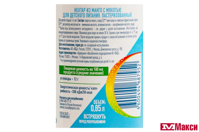 НЕКТАР "J-7" МАНГО 0,85Л ПЭТ (ВБД)