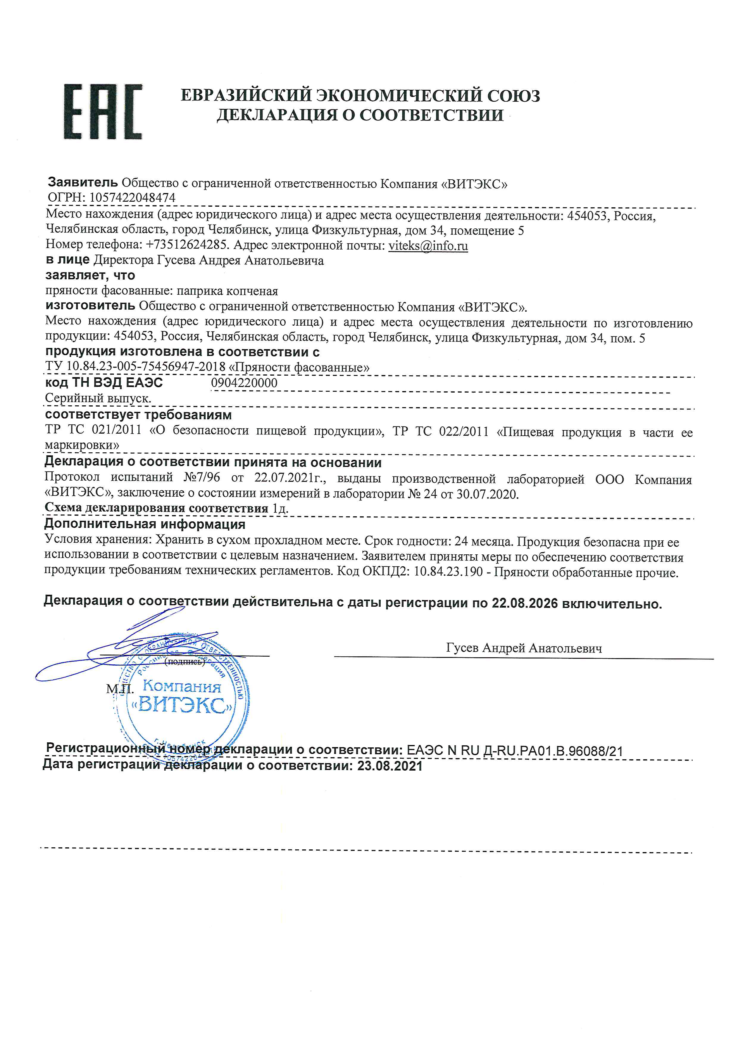 Условия хранения