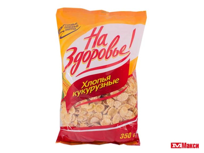 ХЛОПЬЯ КУКУРУЗНЫЕ "НА ЗДОРОВЬЕ!" 350Г (КАДНИКОВ)(глазированные сахаром (351))